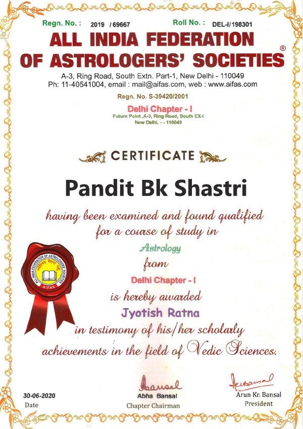 Renowned Vedic Pandit BK Shastri is known for his profound expertise in resolving life's challenges through pure astrological remedies. Whether you seek guidance for love, marriage, career, family harmony or any other concern, his practical solutions can light your path. . He has 20 + years of experience in serving as an astrologer. Pandit BK Shastri is a renowned International astrologer and motivational speaker.